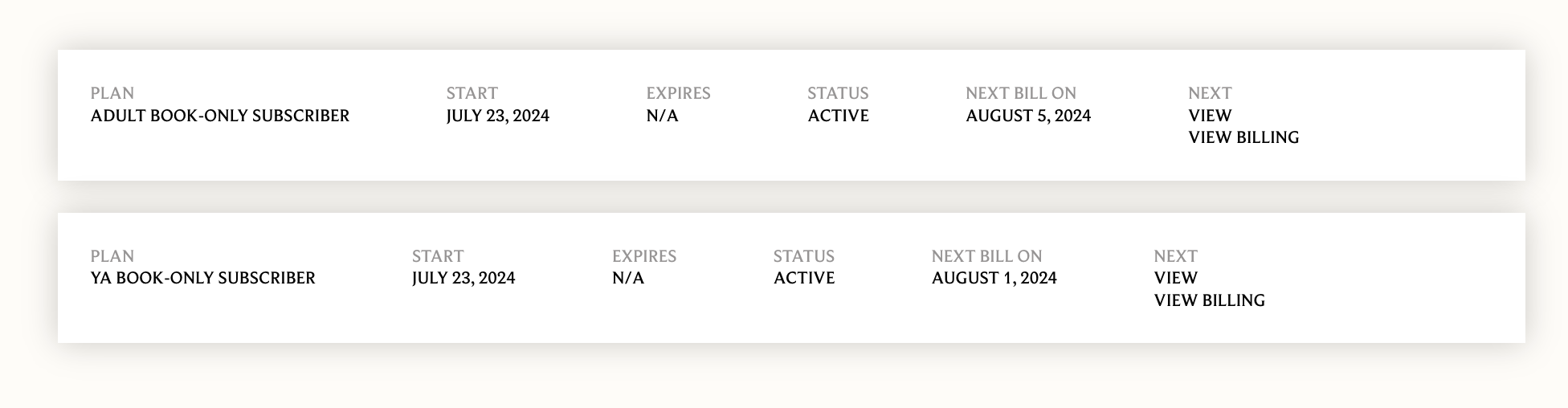 If you have more than one subscription, these will be listed as shown below. You will need to click one of the subscription names (it doesn't matter which) to access the Members-Only Shop.